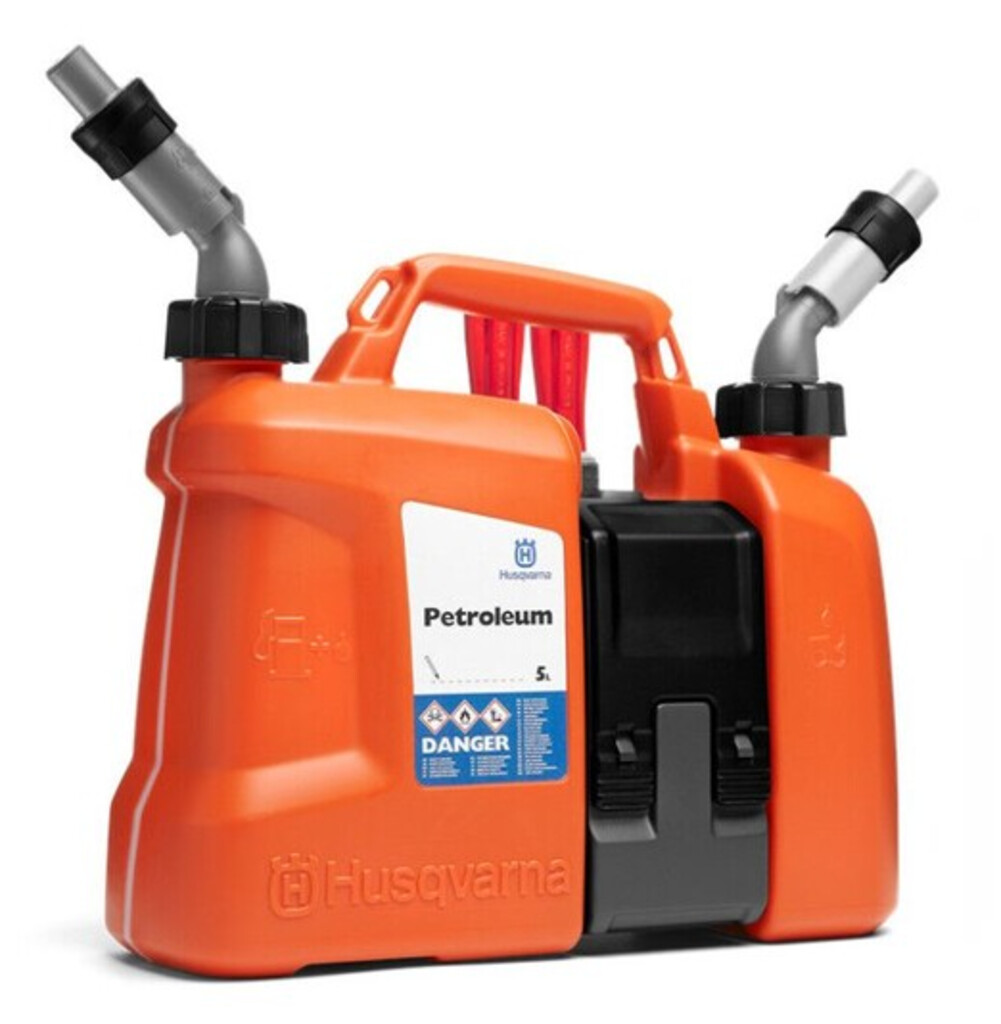 Nuestro bidón Combi rediseñado le permite recargar combustible rápidamente sin efectos de salpicaduras ni desperdicios. Además, los tamaños de los dos contenedores se han ajustado para lograr una relación optimizada de combustible y aceite de cadena (5.0 / 2.5 litros). Además, el bidón Combi tiene una caja de herramientas integrada para herramientas y piezas de repuesto que se necesitan con frecuencia, lo que le permite seguir trabajando. Aprobado de acuerdo con las recomendaciones de la UN.