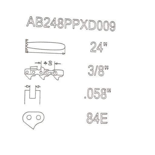 Barra Afosa 24" Punta Piñón Paso 3/8" Calibre .058" 84 Eslabones
